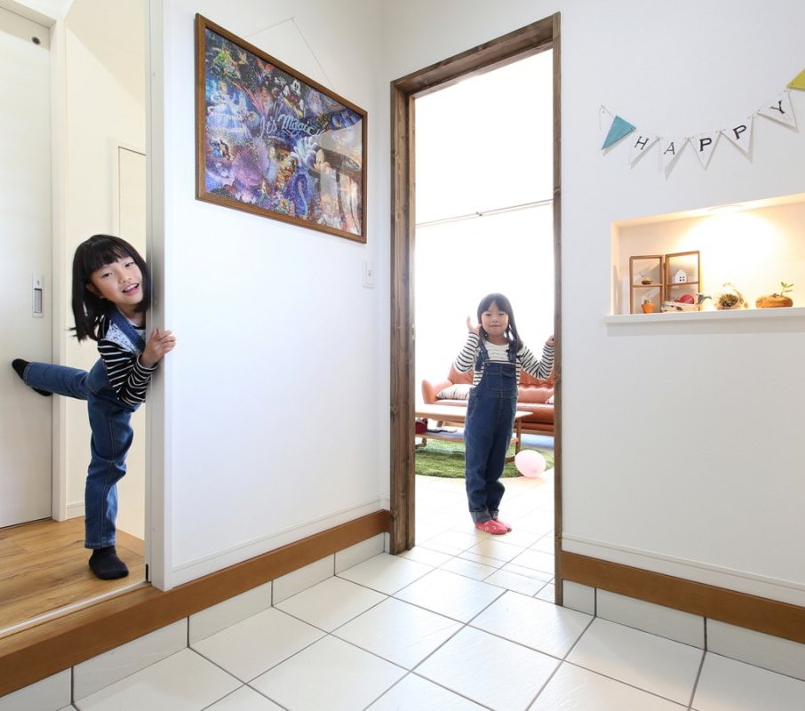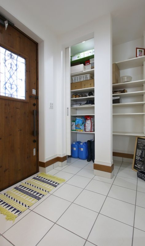 「土間」といえば、the 日本家屋!と想像される方が多いかもしれませんが、こちらのお家はなんとタイル貼り。白色のタイルが壁の色とマッチしたオシャレな仕上がりです。
