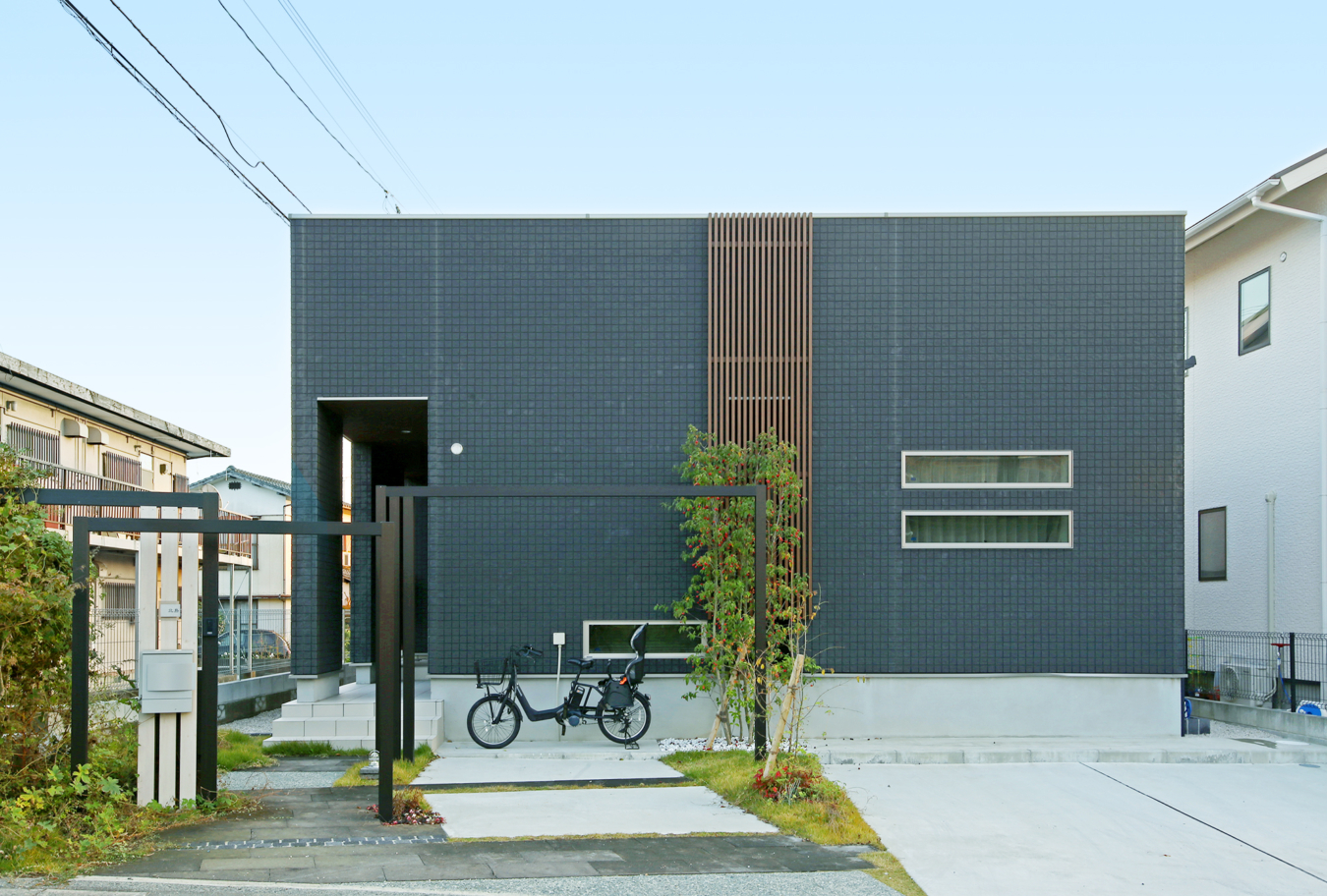 縦横の比率にこだわったスクエアをリズム感良く配置し、自然や街並みと調和しています。