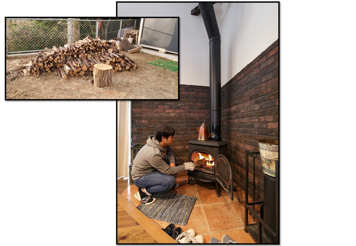 取材をさせて頂いたのは1月中旬のとても寒い日。それでも薪ストーブとその温かさを外に逃がさない外断熱工法のおかげで、汗ばむほどの室内でした。