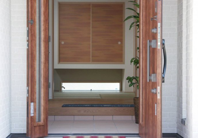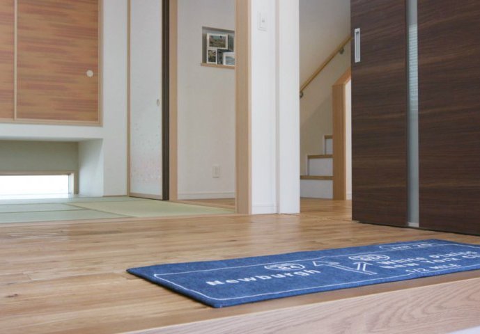 玄関を上がってすぐ、無垢素材を使用した床の温かみを感じます。