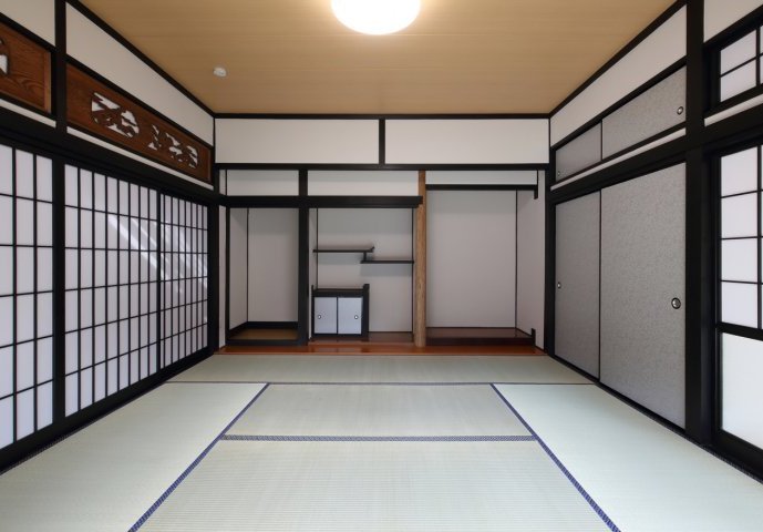 全体は白壁に漆風の黒を基調とした木づくりで、さらに不要となった欄間もディスプレイとしてオシャレで和モダンなお家に生まれ変わりました。