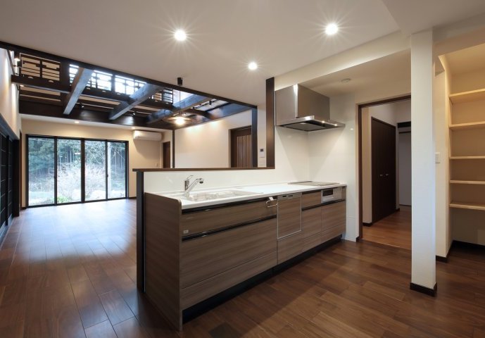 住み心地の良さとは、使い勝手や快適な室温だけではありません。二間続きの和室は板張りのLDKに。上部を吹抜けにして明り取りもつけたので、見た目にも明るく開放的な空間になり、毎日気持ち良い朝を迎えることができるとご満足いただいてます。
