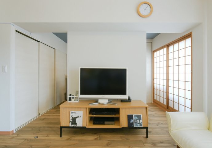 白枠のテレビは、部屋のイメージに合うようにと