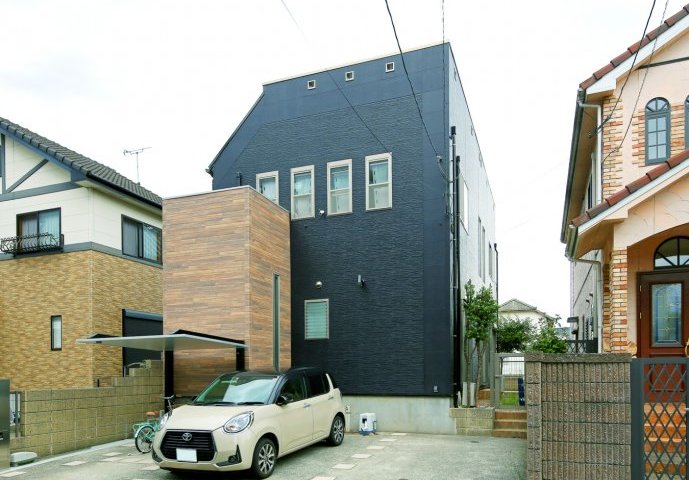 外壁を一新したことで、モダンな外観へと変わりました。 玄関口の位置も変更しています。(左:リフォーム後 右:リフォーム前)