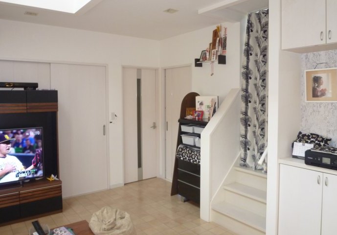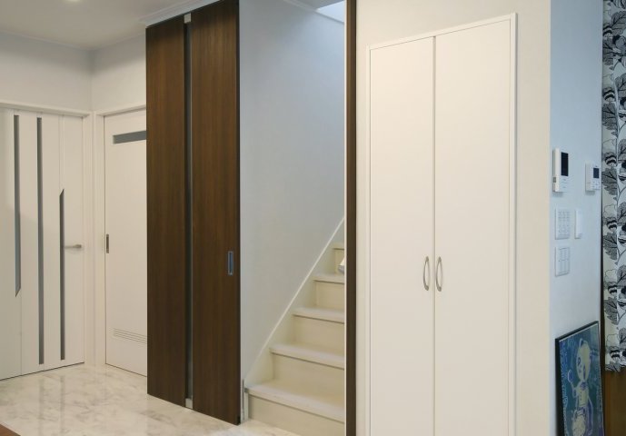 階段にドアをつけることで、リビングがすっきりとした印象になりました。(左:リフォーム後 右:リフォーム前)