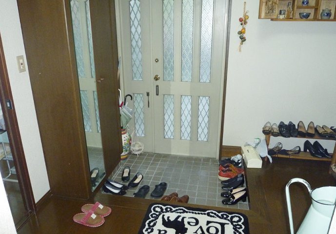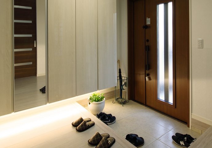 玄関収納を大きくし、今まで困っていた靴類の収納を解決しました。(左:リフォーム後 右:リフォーム前)