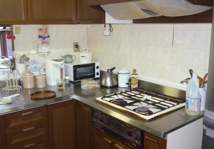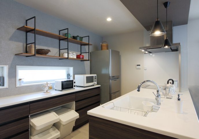 キッチンも広くなりました。収納スペースもたっぷり確保。(左:リフォーム後 右:リフォーム前)