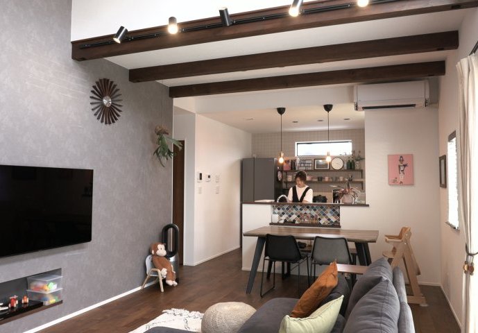 「結婚した時から、一戸建てが欲しいねって二人で話してました」と奥様。「まずは、いろいろ見てみようってことになって、福津市の住宅展示場に行ったんですけど、そこで目に飛び込んできたのが、悠悠ホームさんのモデルハウスだったんです」とご主人。そのモデルハウスは“SLOW”。奥様曰く「実は、アジアンリゾートっぽい家がいいなあと漠然とは考えていたんですが、他のどことも違う外観と雰囲気に一目見て、“イメージぴったり!中を見てみよう”ってなったんです」とのこと。