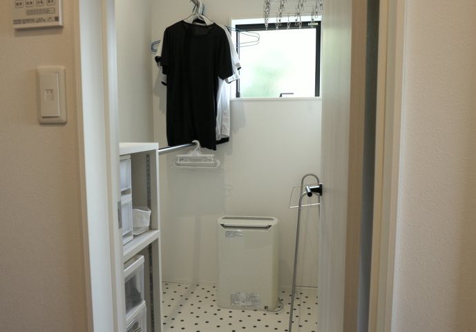 「今までPM2.5や花粉が気になっていたのでどうしてもランドリールームを作りたかったんです」とのこと。「洗濯が終わるとそのままランドリールームで干せるのでとっても気に入っています!」と笑顔でお話ししてくれました。天気を気にせずここに干してお出掛けするという安心のライフスタイル。これからの定番になっていきそうですね。