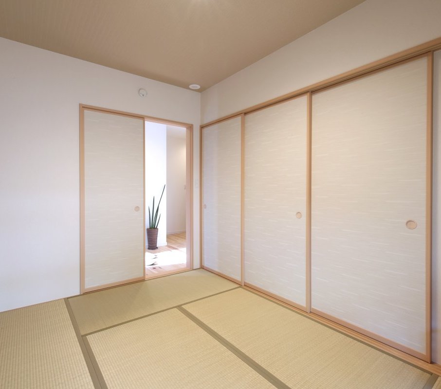 玄関ホールからもリビングからも入れる和室は使い勝手が多様です。来客時はふすまを閉じれば客室として仕えてプライバシーも確保できます。「この和室は作っておいてよかったです。今は子どものおもちゃスペースになっていますが、先々は床の間にも掛け軸などを掛けたいです」と本格的な和室にすることを希望されていらっしゃいました。