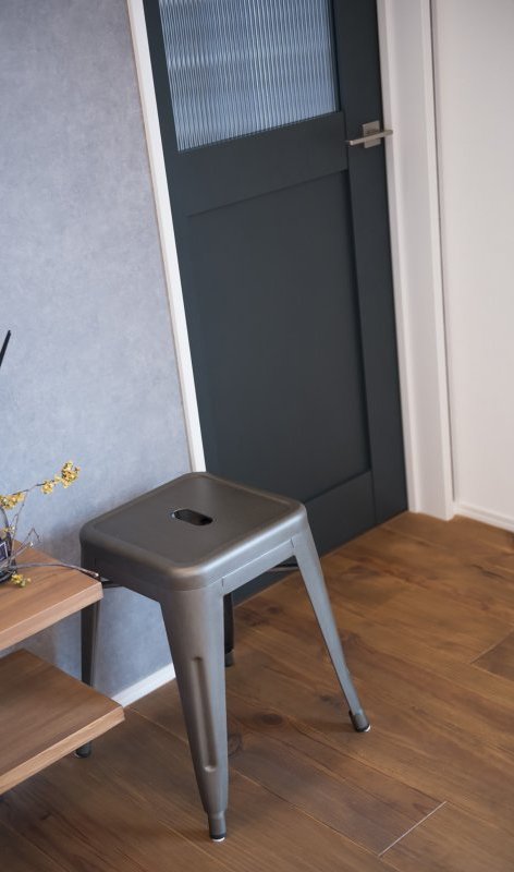 玄関に入ると目に入るのは、凹凸のある無垢材のフローリング。「佐賀のモデルハウスでこれを見て、一目で気に入ってしまったんです」と奥様。スプーンで削ったような、スプーンカット加工を施した珍しいフローリングです。丸みを帯びた模様が特徴的で、やさしくなめらかな曲線が空間を柔らかな印象にし、足触りも良く快適です。