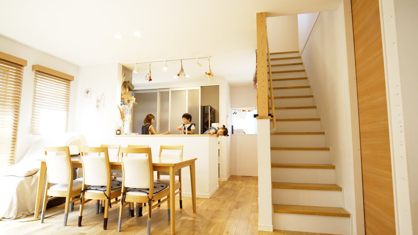 帰って来た子どもたちの表情が見られるーリビング階段