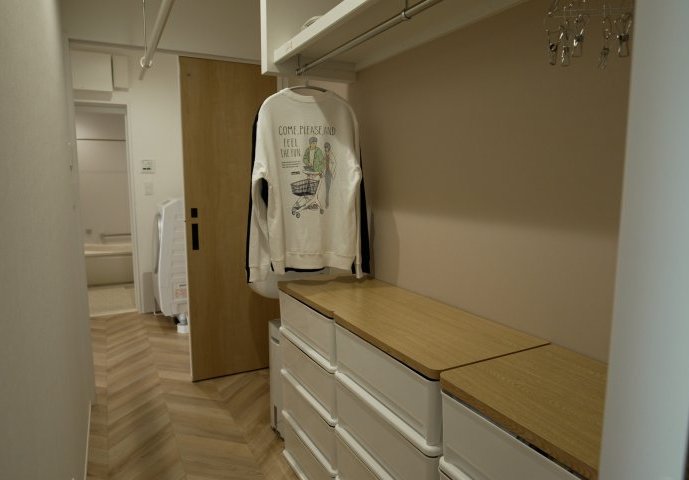 キッチン周りを回遊できる動線は良く見る提案ですが、なんとキッチンの裏にも“秘密”の動線があります。ファミリークローゼット~ランドリールーム(部屋干し)~更衣室~バスルームと、キッチンからの家事動線を確保することで、無駄のない動きを実現。「冷蔵庫の収納とともに、生活感を極力、オモテに出さないことが理想だったので、その憧れの暮らしが毎日続いているっていう感覚なんです!」とニッコリの奥様です。