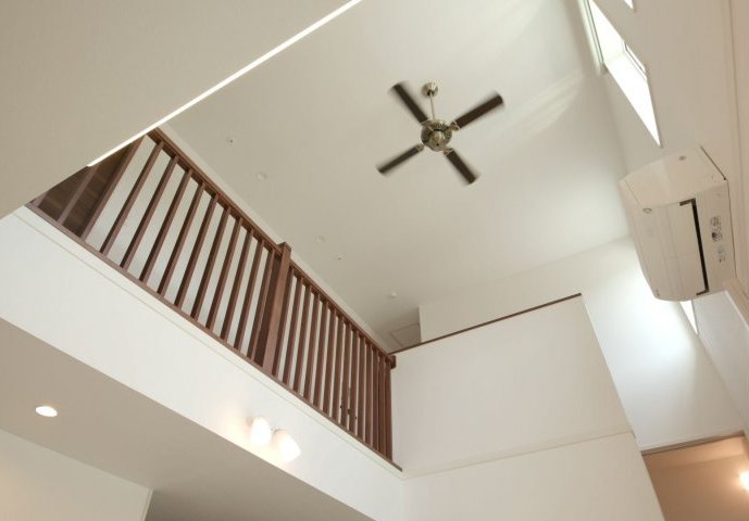 オーナー様が悩まれたのは、吹き抜け部分の手すりの仕上げ方。壁の仕上げにするか、多少コストがあがっても格子手すりにして光をさらに取り込めるようにするか・・・・。