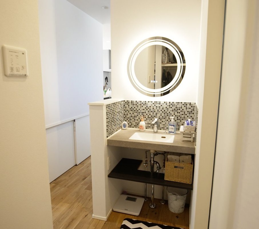 「これはもう、10年後を考えました(笑)」とご主人は話します。ふたりのお嬢さんがいる高木様邸。「お化粧やお風呂の後のドライヤーの時間などを考えるとひとつでは絶対に足りないと考えています」と、まだ先のように思えてもいつか来るその日に備えての要望だったようです。もちろんコロナ感染対策にも効果を発揮しています。