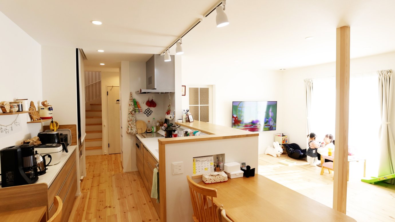 子どもが走り回り、キッチンワークもスムーズに!―2WAYの回遊動線