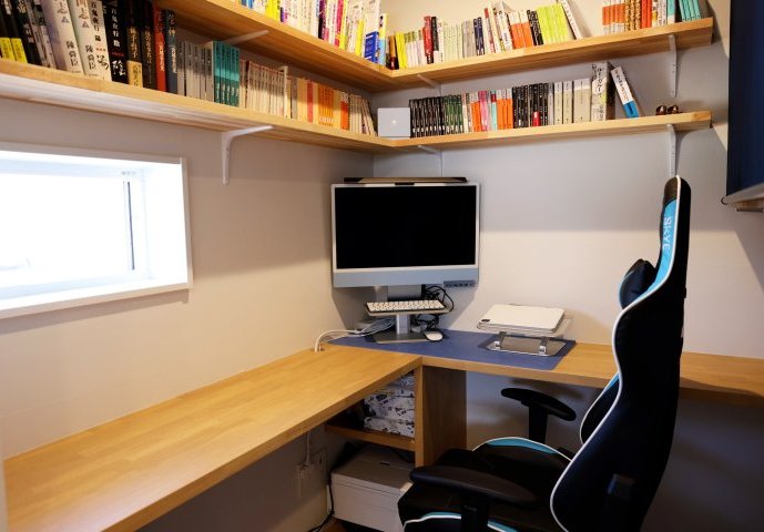 寝室横にある書斎はサクラウォールを使っています。リモートワークが多くなり、書斎での仕事が増えたご主人。「空気が新鮮だなっていうことが感じられますね。そんな中で仕事が出来るので、とっても捗ります」