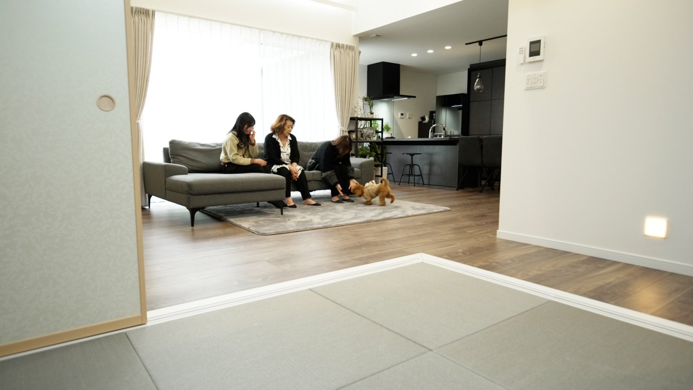 家族みんなを癒してくれるワンちゃん。気になるのはそのニオイです。でも、悠悠ホームが開発したサクラフレッシュはその心配をまさに“吹き飛ばす”心地よい空間に変えてくれます。「モデルハウスに行った時と全く同じでしたね!これには驚きました。もちろんおしっこなんかもするんですが、友達が遊びに来ても全く匂わないって言うんです」また、「Caféの方もそうなんです。肉料理もしますし、レンタルでネイルやアロマの講座があっても翌日には匂いが消えてるんですね。すごい技術だと思います」と声を揃えます。