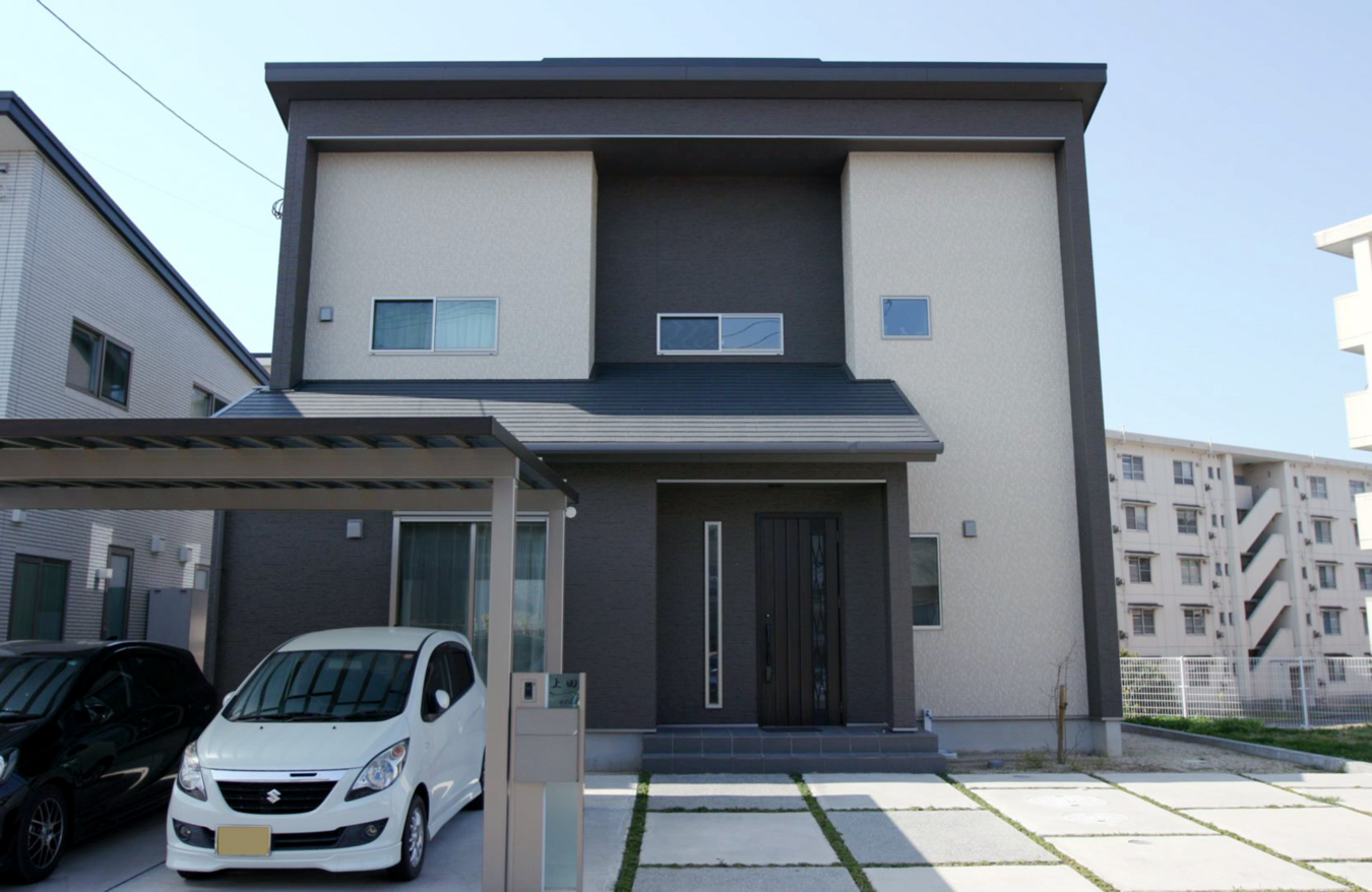 ブラウンとベージュのバイカラーが目を引く外観。