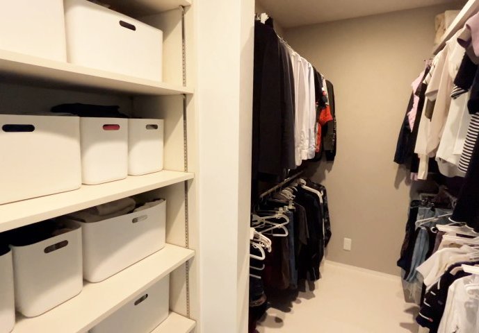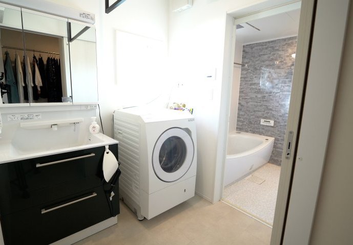 2階の一番奥が水回り空間となっていて、ランドリールームとファミリークローゼットが隣接しています。家事を分担しているオーナー様邸では、洗濯~部屋干し~収納という、いわゆる「家事ラク動線」の設計となっているので、その分、家族でいる時間が増えているそうです。