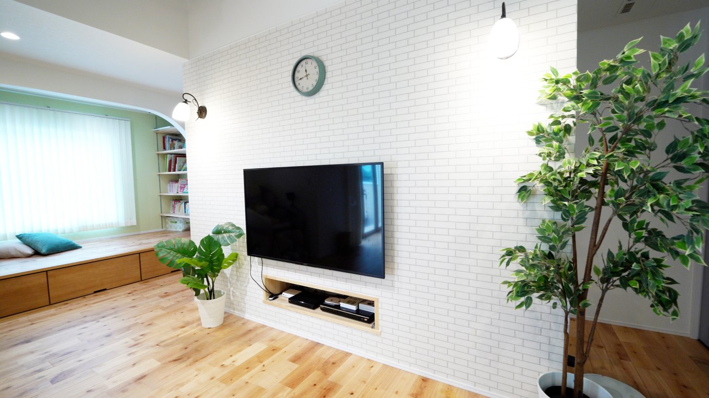 テレビボードの裏には散らかりがちな小物などを仕舞える収納スペースがあります。「急な来客があってもサッとここに隠せば見られることもないので、私的には一番重宝しているかも…」と奥様が話してくれました。