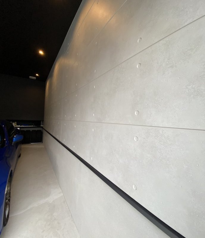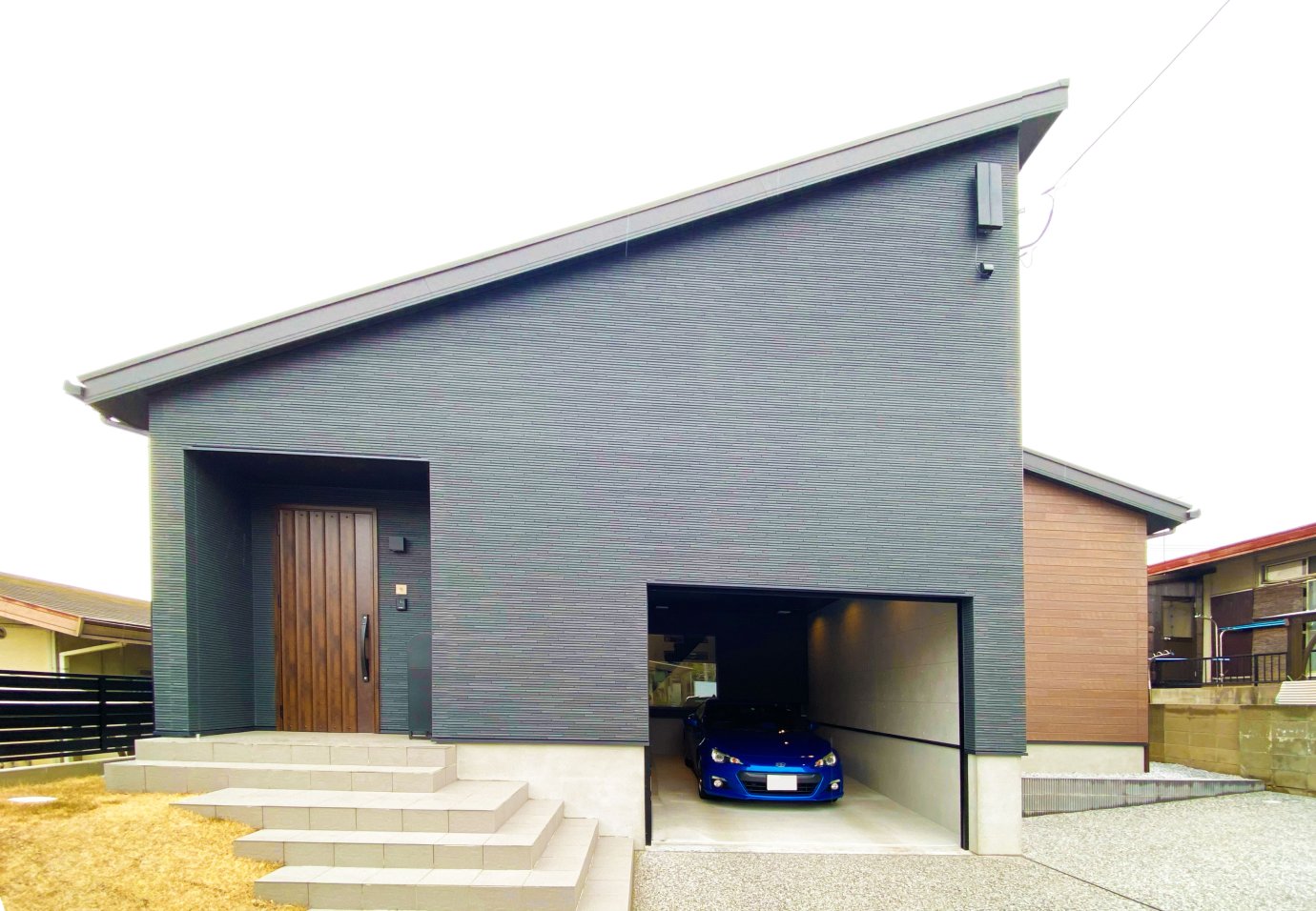 ガレージには外壁と同じ黒のストーン調にコンクリート打ちっぱなし調のサイディングを採用。シンプルな質感が、空間にクールでスッキリとした清潔感を演出。