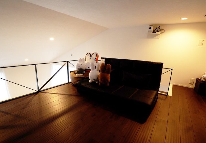 ロフトの床はLDKと同樹種の色違いであるダークブラウンの無垢材を使用。