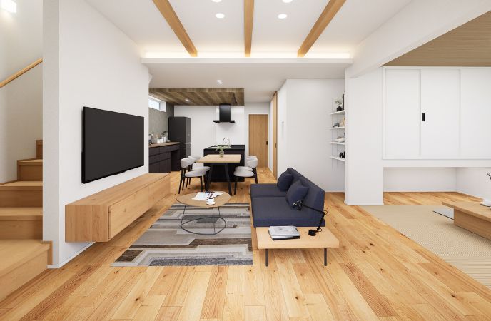 【大野城市】「化粧梁×折上げ天井」立体的な広がりでゆとりあるLDKの家